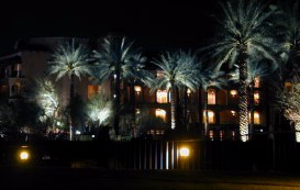 I plugged in my laptop to recharge from the plane and went over to the buffet dinner on the "Lagoon Lawn". Here's the hotel at night on my walk from my room and some of the people sitting eating: