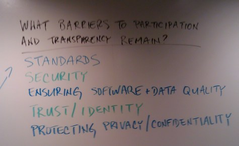 I will be moderating the discussion. We'll see where things go based on the discussion. To start off and to get people thinking in advance, here are some possible discussion areas I've come up with. They should be looked at with respect to government as well as general commercial IT and personal-use technology, in the areas of transparency, participation, and collaboration with an eye towards a duty of responsibility to more than just ourselves as we build a foundation for growth that is inclusive: